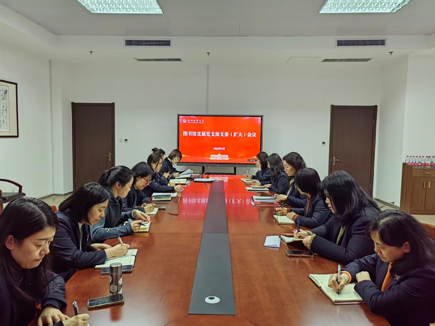 发布时间:2026年03月16日 08:55 浏览次数:3月11日,图书馆直属党支部召开支委(扩大)会议,深入学习习近平总书记关于树立和践行正确政绩观学习教育的重要论述,认真落实党中央、省委和学校党的建设工作领导小组会议精神,全面动员部署党支部开展树立和践行正确政绩观学习教育。会议由图书馆直属党支部书记、馆长李䶮主持,全体党员参加会议,非党部主任列席会议。